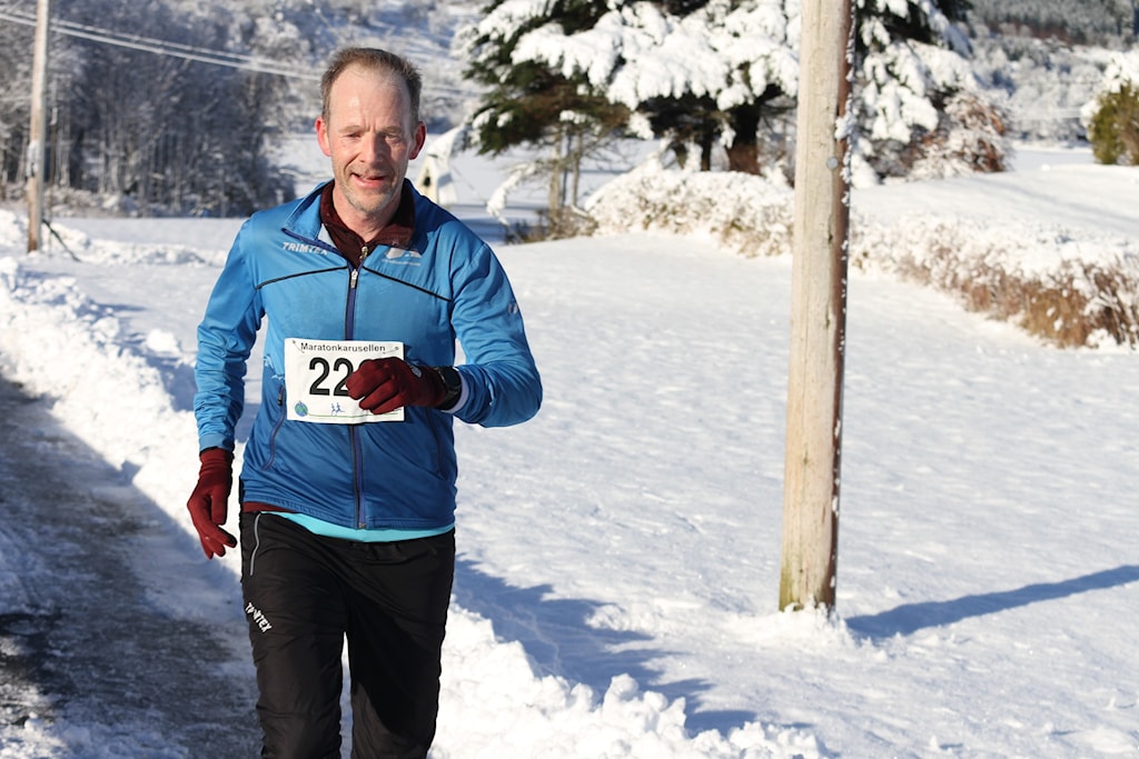 Foto: Maratonkarusellen. BFG-løper Per Gunnar Alfheim under halvmaraton i Februar Maraton 2025, med tiden 2:12:46.