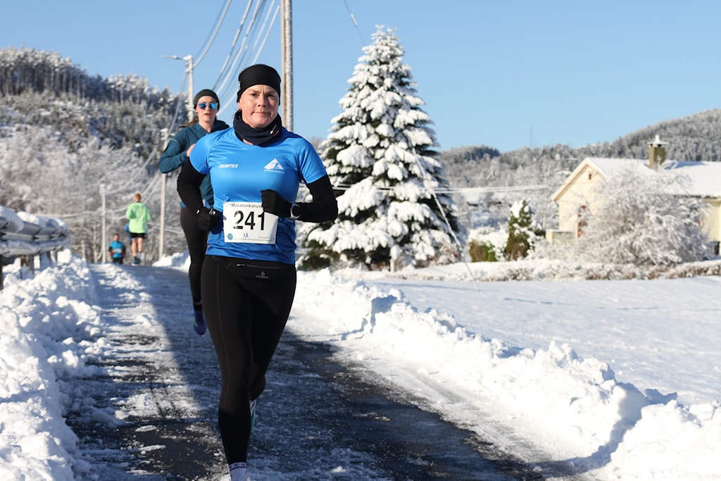 Foto: Maratonkarusellen. BFG-løper Marin Martinussen Tvedt under halvmaraton i Februar Maraton 2025, med tiden 1:27:33.